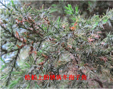 寄主条件:锈病发生的轻重与梨、苹果、山楂的周围存在桧柏等柏科植物的数量和距离远近正相关。