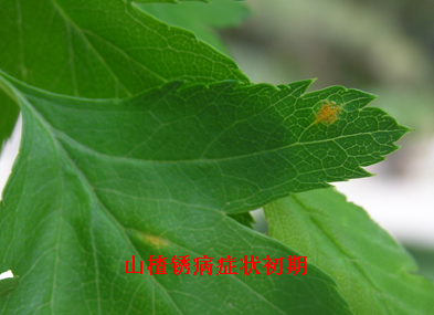锈病主要危害苹果、海棠、梨、山楂等寄主叶片,也危害嫩枝和果实。受害叶片最初出现黄绿色小点,扩大后呈橙黄色或橙红色有光泽的圆形小病斑,边缘有黄绿色晕圈。病斑上着生针尖大小橙黄色的小点粒,后期变为黑色。逐渐病部组织向叶背稍隆起,其上长出许多黄白色须状物,最后病斑变成黑褐色。桧柏等寄主植物被侵染后,针叶和小枝上形成大小不等的黄褐色瘤状物,雨后瘤状物吸水变成胶质状,受害的针叶和小枝一般生长衰弱,严重时可枯死。
