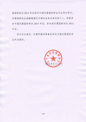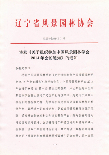 中国风景园林学会2014年会将于9月11日~13日在沈阳召开,由中国风景园林学会主办,辽宁省风景园林协会、沈阳农业大学、辽宁山水城市园林景观有限公司、金柏园林集团股份有限公司承办,辽宁省住房和城乡建设厅、沈阳市城市建设局、盘锦市住房和城乡建设委员会为支持单位。会议主题为“城镇化与风景园林”。会议将邀请7-8名国内外知名专家作大会报告。设6个分会场进行研讨,并组织沈阳和盘锦风景园林的技术考察。会议同期举办大学生风景园林设计竞赛和中国风景园林学会相关奖项的颁奖等活动,并召开中国风景园林学会女风景园林师委员会成立会议和专题论坛。会议预期规模为1000人。现就会议报名、交费和报到等事宜通知如下,请你们做好参会报名组织工作。