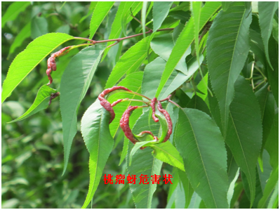 随着早春京桃开花展叶而发生的一种蚜虫,群集在叶背取食,刺激叶片纵卷,形成虫瘿,藏匿其中危害,后期叶片卷成细绳状,干枯脱落。种群密度大时,严重影响京桃的生长,造成树木“开红花”的危害状。