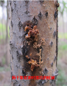 防治方法:(1) 向受害植株干部喷涂2.5%溴氰菊酯乳油100倍与10%吡虫啉可湿性粉剂100倍混液,或者2.5%溴氰菊酯乳油100倍与40%杀扑磷乳油100倍混液,防治幼虫;⑵ 向有虫株蛀孔内注射48%毒死蜱乳油原液,然后用粘土或棉球封住虫孔毒杀幼虫;(3)对于虫口密度较大无保留价值的有虫株,立即伐除处理。
