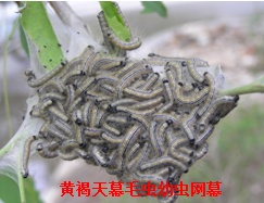 防治方法:(1)4月下旬,对往年发生经常发生点位的京桃、杨树等寄主植物喷洒除虫脲、灭幼脲或苯氧威等昆虫生长调节剂预防;(2)低龄幼虫期喷施1.2%苦•烟乳油800倍液、1%苦参碱水剂800倍液、2.5%溴氰菊酯1500倍液等药剂防治;(3)人工剪除黄褐天幕毛虫幼虫网幕,销毁处理。