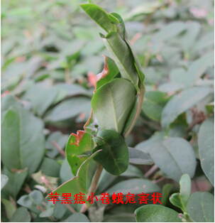 【苹黑痣小卷蛾】 该害虫在我市的水蜡上危害,幼虫将叶片缀在一起,藏匿其中取食。若疏于防治,造成叶片缀连、卷曲、枯死等。