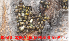 防治方法:一是人工清除叶甲蛹;二是向榆树喷施2.5%溴氰菊酯乳油1500倍液或阿维•高氯2000倍液进行喷药防治成虫。