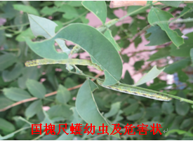 【国槐尺蠖】 目前国槐尺蠖已进入危害盛期,部分疏于防治点位的国槐、龙爪槐等寄主植物叶片已被大量取食,并排泄大量粪便于寄主周围,在危害园林植物的同时也严重污染其周边环境,为避免危害情况进一步恶化,应及时向发生严重点位的国槐、龙爪槐喷洒2.5%溴氰菊酯乳油2500倍液防治。