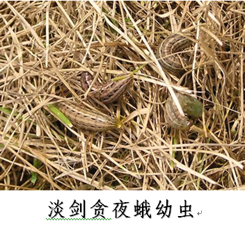 【淡剑贪夜蛾】主要取食禾本科草坪根茎部,造成草坪枯黄。目前该害虫处于幼虫危害期,应及时向草坪喷洒1.2%苦•烟乳油800倍液或森得保可湿性粉剂1500倍液等药剂进行防治。