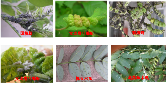 高温干旱促进蚜虫、叶螨、蚧虫、网蝽、木虱、蓟马等刺吸类害虫的繁殖和为害,近期我省国槐、白蜡、刺槐、五角枫、杨、柳、榆、山杏、黄檗、榆叶梅等园林植物先后出现较严重的受害症状,需要尽快防治,减轻园林植物的受害。