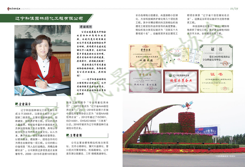 辽宁和佳园林绿化工程有限公司优秀工程